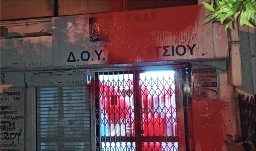 Επίθεση Ρουβίκωνα σε πέντε εφορίες της Αττικής – Πέταξαν μπογιές και τρικάκια (φωτο)