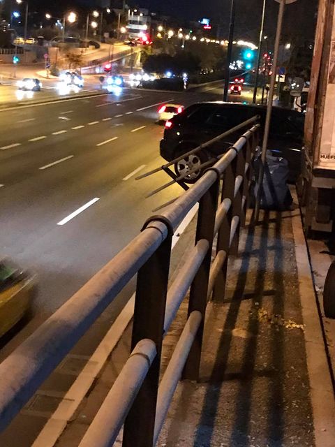 Το εντυπωσιακό είναι πως το Ι.Χ, έχοντας σπάσει τα κάγκελα είχε μείνει κρεμασμένο, το μισό πάνω στον παράδρομο της Βουλιαγμένης και το άλλο μισό να κρέμεται πάνω από την κεντρική λεωφόρο.