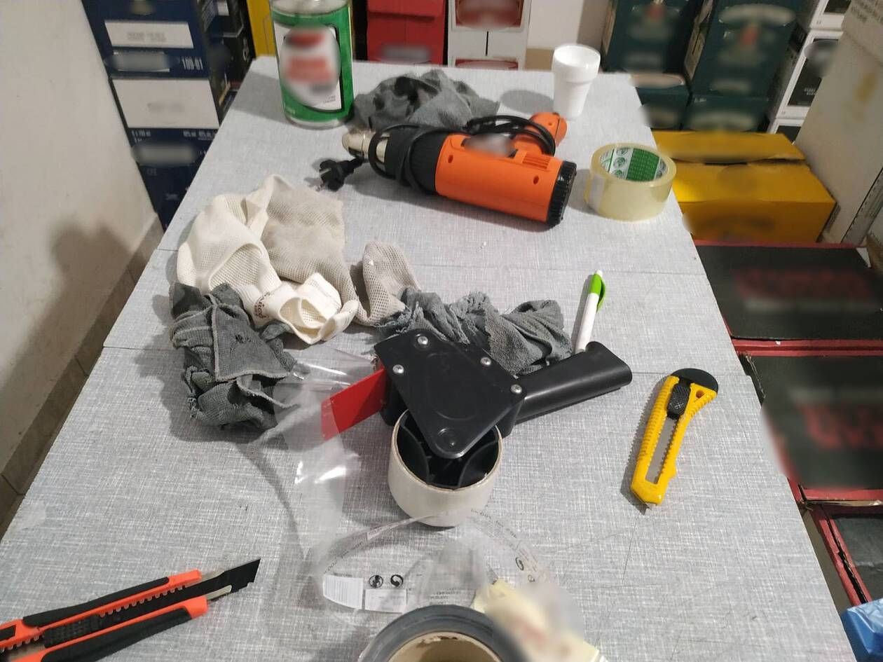 34.490 ευρώ και εργαλείο -πιστόλι θερμού αέρα, μεγάλο αριθμό από ξύστρες, κοπίδια, κόλλες, σφουγγάρια, και 2 φορτηγά.