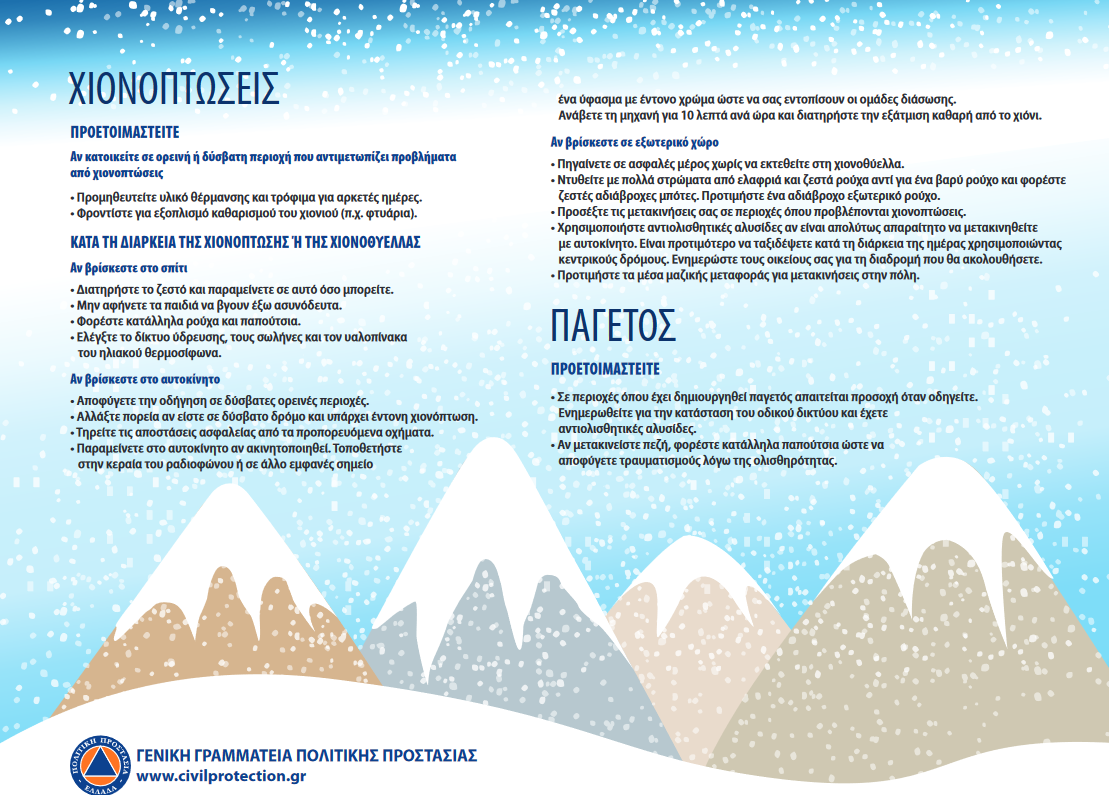 Να αποφεύγουν τις άσκοπες μετακινήσεις κατά την διάρκεια αιχμής των φαινομένων (έντονη χιονόπτωση, συνθήκες παγετού)