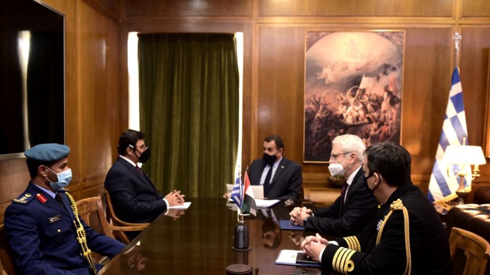 Σύμφωνα με το υπουργείο Εθνικής Άμυνας έγινε ανταλλαγή απόψεων για τις περιφερειακές εξελίξεις και την συνεργασία Ελλάδος και ΗΑΕ για προώθηση της ασφάλειας και σταθερότητας στην ευρύτερη περιοχή.