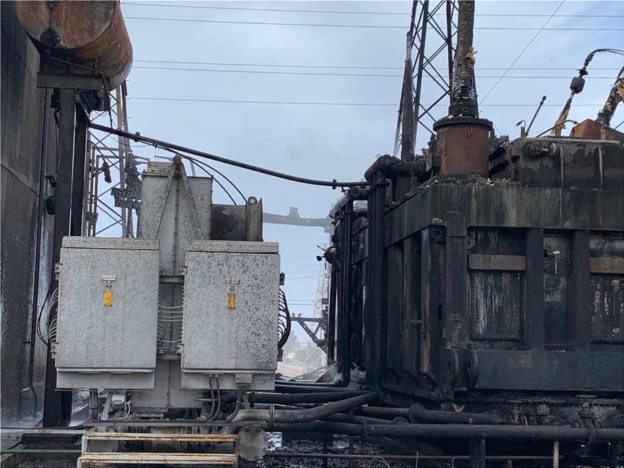Καταστράφηκε ολοσχερώς ένας από τους τέσσερις αυτομετασχηματιστές από την φωτιά που ξέσπασε χθες στον υποσταθμό της ΔΕΗ στον Ασπρόπυργο.