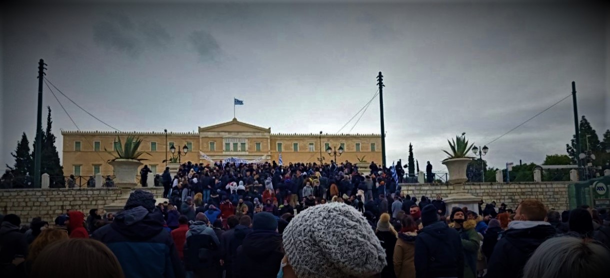 Χιλιάδες πολίτες συγκεντρώθηκαν εντελώς αυθόρμητα, παρά το δριμύ ψύχος, με ένα κάλεσμα που ξεκίνησε νωρίς το πρωί στα κοινωνικά δίκτυα το απόγευμα της Κυριακής στο Σύνταγμα για να διαδηλώσουν κατά του lockdown, όπως επίσης και σε Θεσσαλονίκη και Πάτρα, ενώ νωρίτερα υπήρξε συγκέντρωση και στη Ζάκυνθο