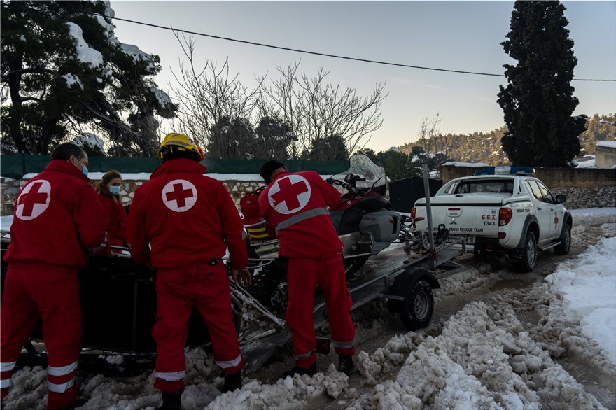 Ο Ελληνικός Ερυθρός Σταυρός απεγκλώβισε κατοίκους που είχαν αποκλειστεί από τη σφοδρή χιονόπτωση (φώτο)