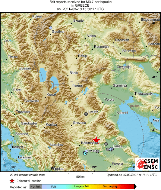 Δείτε στον παρακάτω χάρτη από το Ευρωμεσογειακό Σεισμολογικό Κέντρο, τις περιοχές που έγινε αισθητός ο σεισμός: