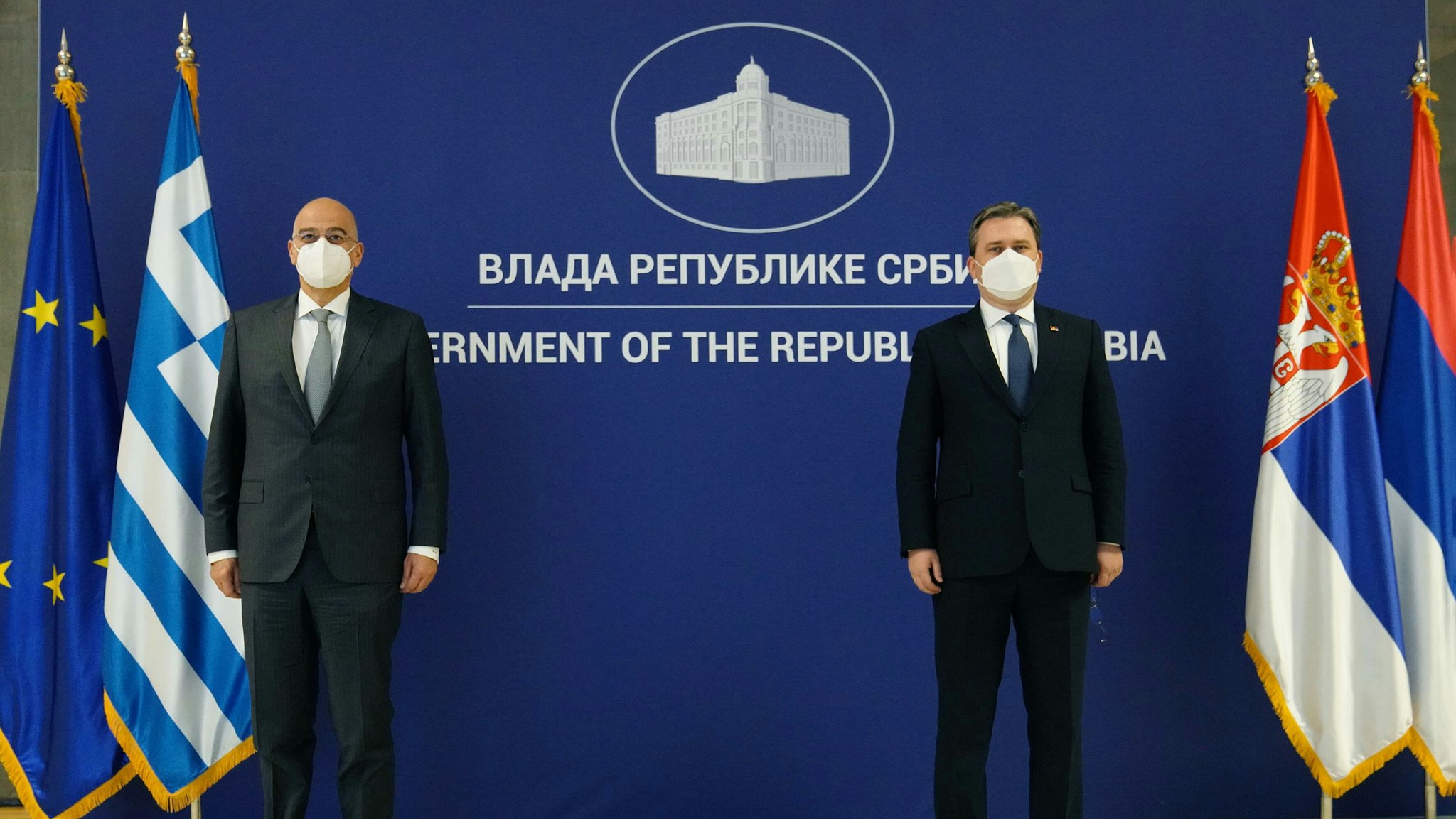 Νωρίτερα σήμερα το απόγευμα, ο Έλληνας υπουργός Εξωτερικών συναντήθηκε με τον Πρόεδρο της Σερβίας Αλεξάνταρ Βούτσιτς στο προεδρικό μέγαρο.