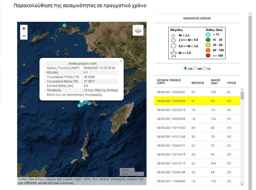 Ακόμη μία σεισμική δόνηση μεγέθους 4,1 βαθμών της κλίμακας Ρίχτερ σημειώθηκε στη θαλάσσια περιοχή ανοιχτά της Νισύρου.
