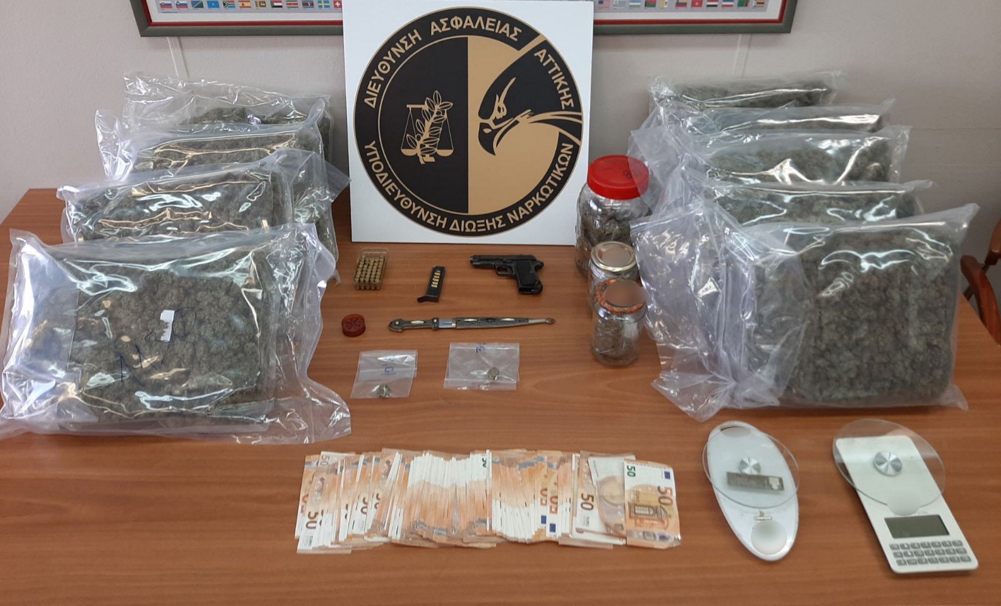 Στην κατοχή τους βρέθηκαν και κατασχέθηκαν, μεταξύ άλλων, 10.105 γραμμάρια κάνναβης (skunk), 3,4 γραμμ. κατεργασμένης κάνναβης (σοκολάτα), ένα πιστόλι, το χρηματικό ποσό των 9.070 ευρώ, 2 ζυγαριές ακριβείας, ένα Ι.Χ.Ε. αυτοκίνητο, μία μοτοσυκλέτα και εξοπλισμός εργαστηρίου κάνναβης υδροπονικής καλλιέργειας.