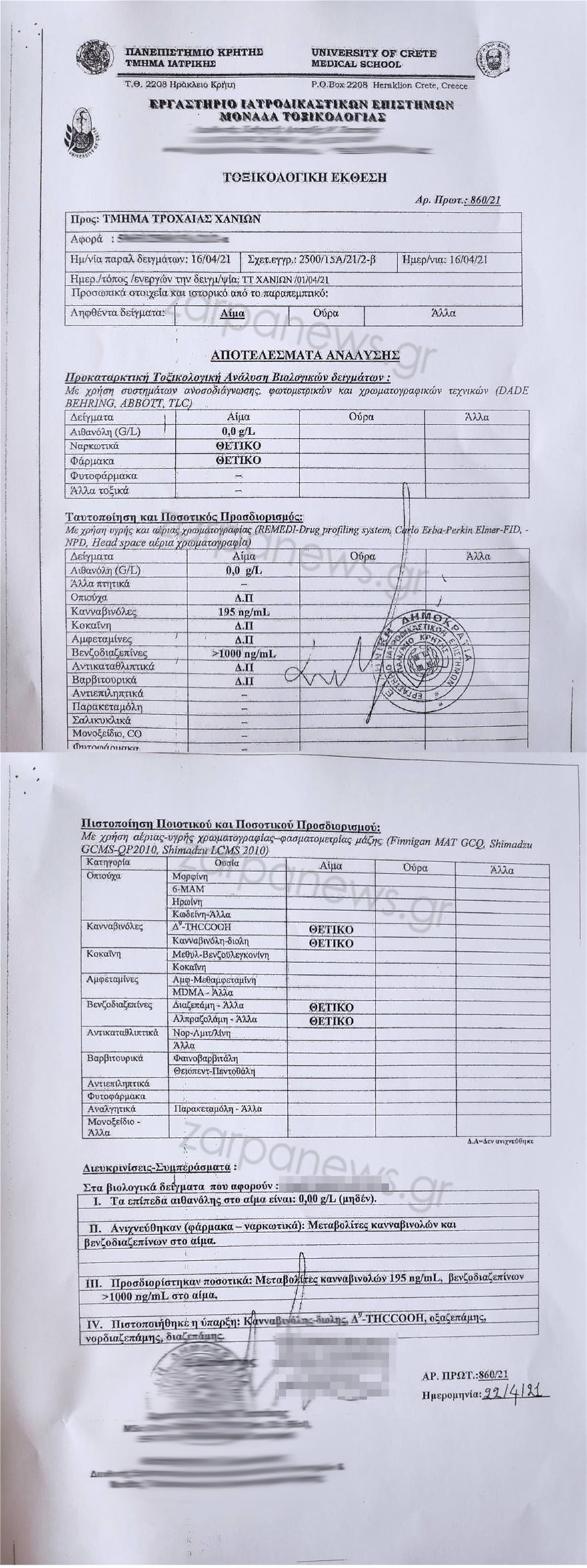 Ναρκωτικές ουσίες εντοπίστηκαν στο αίμα του 40χρονου οδηγού του αυτοκινήτου που ενεπλάκη στο τροχαίο στη Γαύδο με τραγικό απολογισμό τον θάνατο της 28χρονης Κορίνας.
