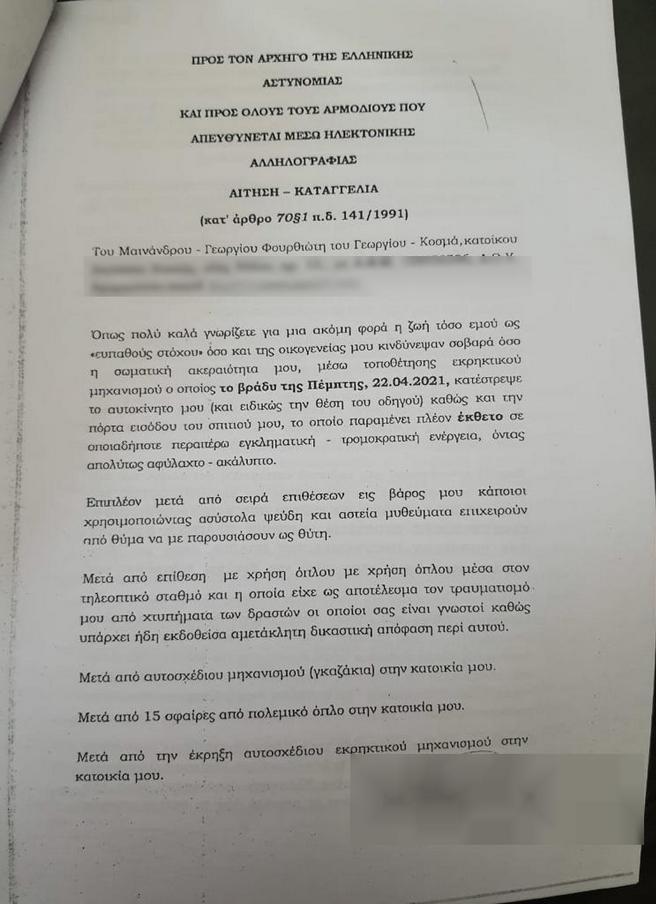 Υπόθεση Μ.Φουρθιώτη: Η επιστολή του προς την Αστυνομία – Έτσι πήρε την προστασία