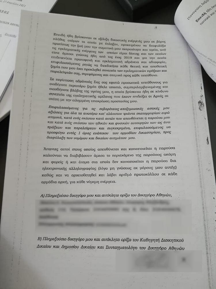Μάλιστα αυτή η επιστολή κοινοποιείται στους κυρίους Μητσοτάκη, Πέτσα και Δημητριάδη, μεταξύ άλλων θεσμικών και πολιτικών παραγόντων.