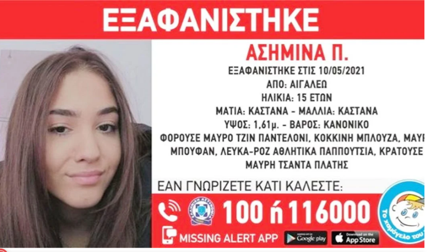 Την 15χρονη Aσημίνα που εξαφανίστηκε από το Αιγάλεω Αττικής αναζητά η οικογένειά της και μετά από αίτημά της, το «Χαμόγελο του Παιδιού» δημοσιοποίησε τα στοιχεία της ανήλικης.