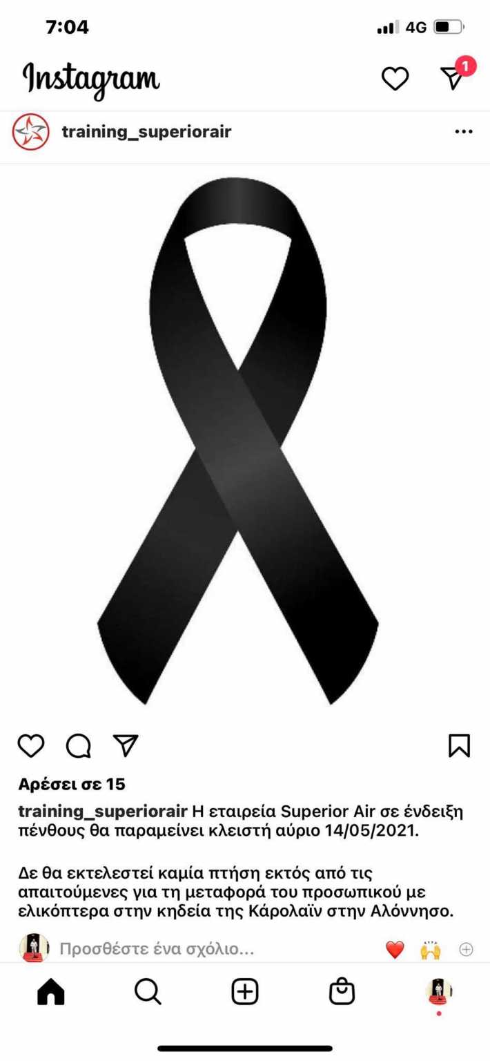 «Η εταιρεία Superior Air σε ένδειξη πένθους θα παραμείνει κλειστή αύριο 14/05/2021.
