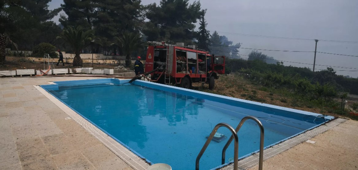 Οι πυροσβέστες, μάλιστα, αξιοποιούν όλα τα μέσα που μπορούν για να καταφέρουν να ελέγξουν την πυρκαγιά, με χαρακτηριστική εικόνα αυτή που ένα όχημα της υπηρεσίας παίρνει νερό από πισίνα σπιτιού στην περιοχή.