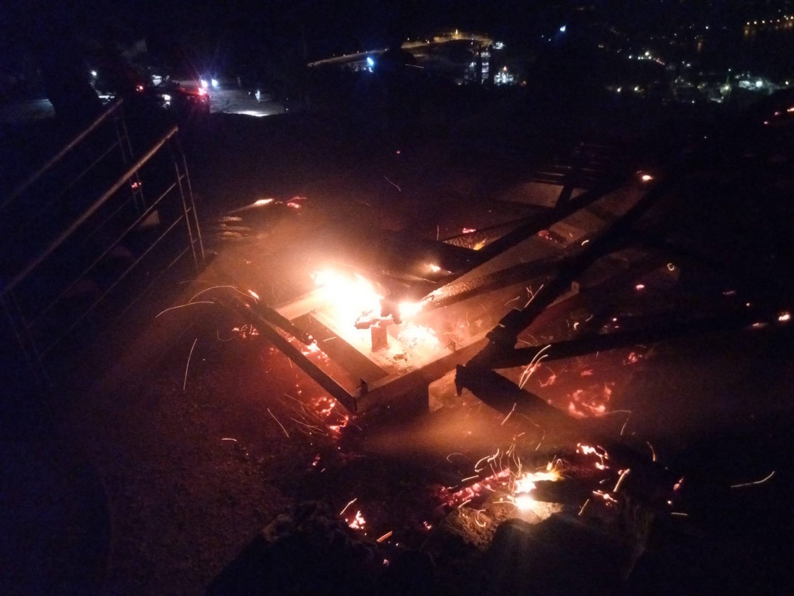 Ο πυροσβέστης είδε τη φωτιά να ξεπηδά στις 10.30΄ τη νύχτα της Πέμπτης στην κορυφή του λόφου και ειδοποίησε τους συναδέλφους του της Πυροσβεστικής, ενώ πήγε και ο ίδιος με το αυτοκίνητό του.