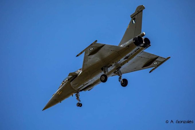 Με ελληνικά εθνόσημα πέταξε το πρώτο διθέσιο Rafale-B από την παραγγελία των 12 μεταχειρισμένων Rafale που θα δοθούν στην ΠΑ από την γαλλική Αεροπορία.
