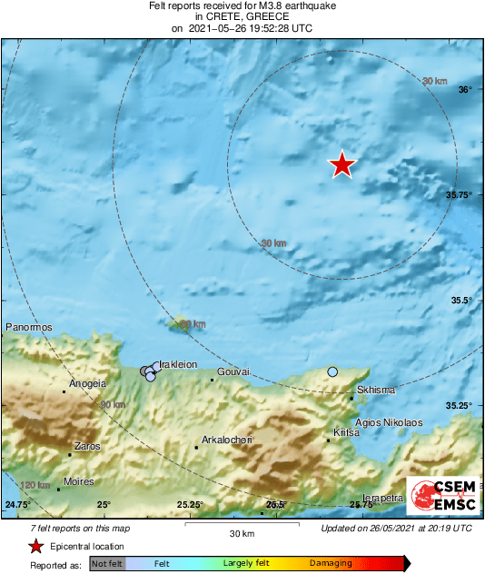 Σύμφωνα με το Γεωδυναμικό Ινστιτούτο ήταν 3,5 ρίχτερ ενώ σύμφωνα με το Ευρωμεσογειακό Σεισμολογικό Κέντρο ήταν 3,8 ρίχτερ…