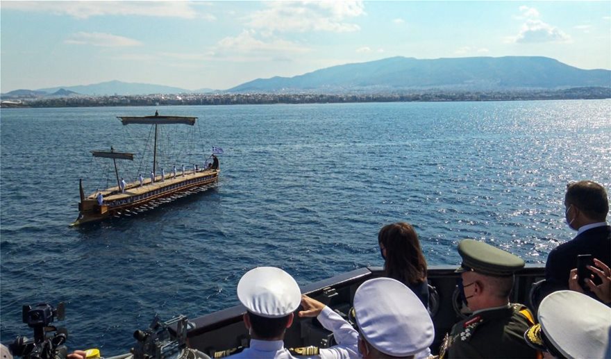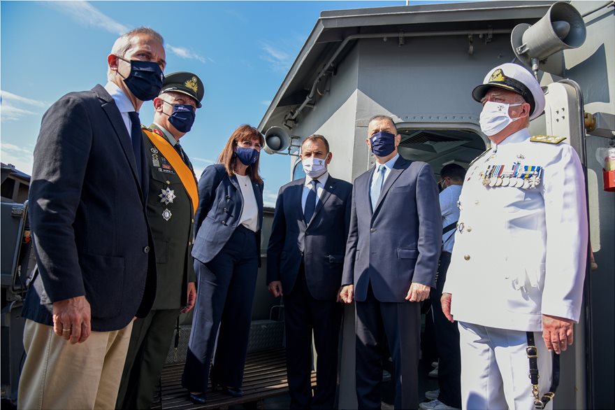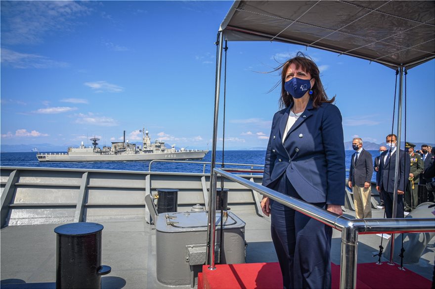 Επιθεώρηση του Στόλου εν πλω επί της φρεγάτας «ΥΔΡΑ», στον Σαρωνικό Κόλπο, πραγματοποίησε η πρόεδρος της Δημοκρατίας, Κατερίνα Σακελλαροπούλου, συνοδευόμενη από την πολιτική και στρατιωτική ηγεσία του υπουργείου Εθνικής Αμύνης.