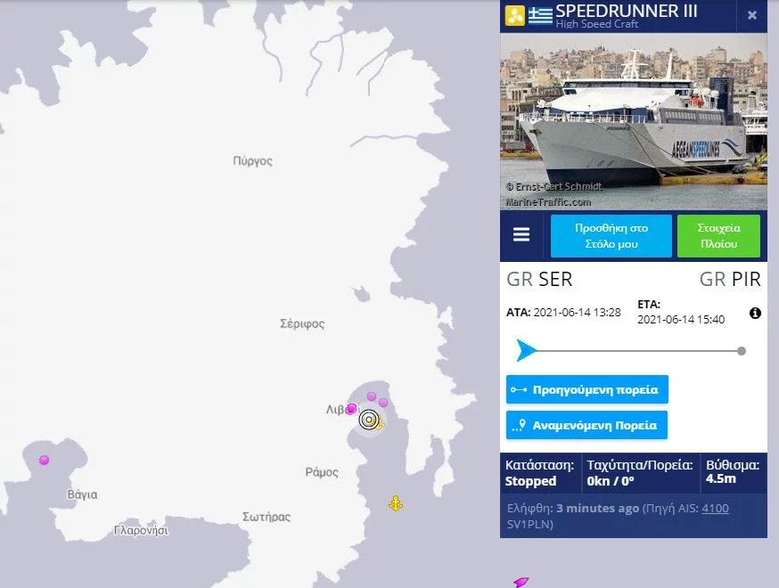 To SpeedRunner 3 είχε προορισμό το λιμάνι του Πειραιά, έχοντας ξεκινήσει το ταξίδι του από την Μήλο, με στάσεις σε Σίφνο και Σέριφο.