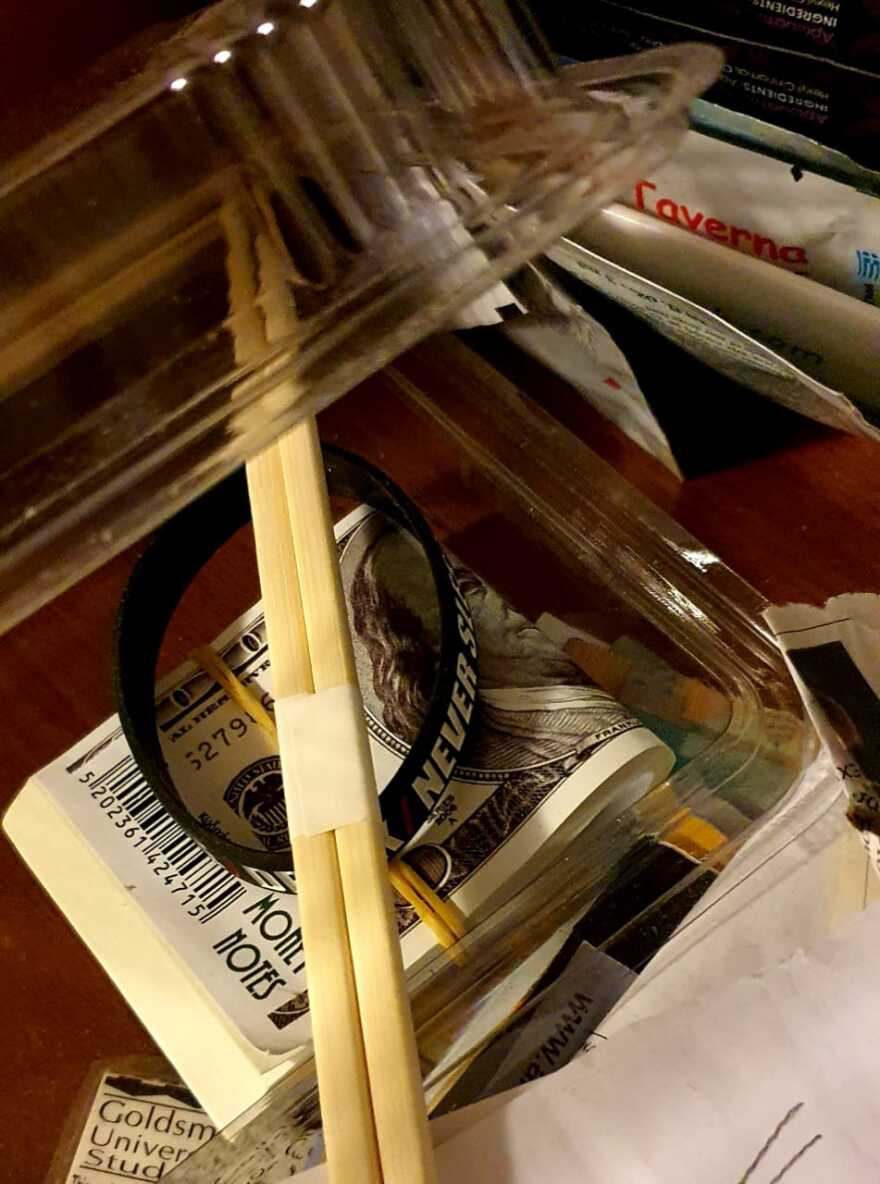 «Δεν ακουμπάνε καν δύο δεσμίδες με χρήματα (1 με 500ευρα, και 1 με 100δόλαρα). Μακάρι να υπήρχαν πραγματικά αυτά τα 2 «τούβλα». Όμως, είναι διαφημιστικά, αλλά πολύ πιστά αντίγραφα ενός promotion (monopoli) που ακυρώθηκε λόγω Covid. Λογικά κάθε στοιχειωδώς «καλός κλέφτης» θα τα είχε τουλάχιστον περιεργαστεί» προσθέτει.