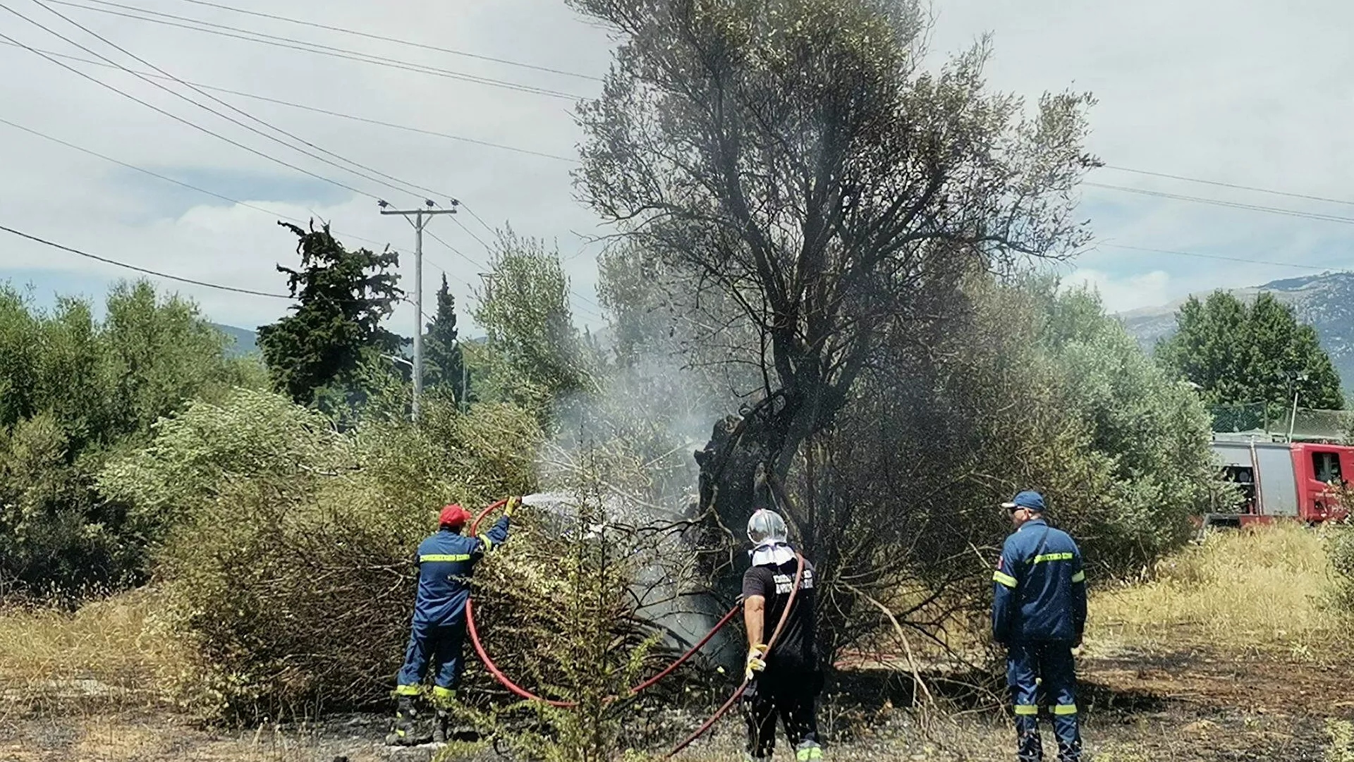 Η φωτιά ξέσπασε λίγο μετά τις 12:00 σε περιοχή με ξερά χόρτα και πυκνή βλάστηση.
