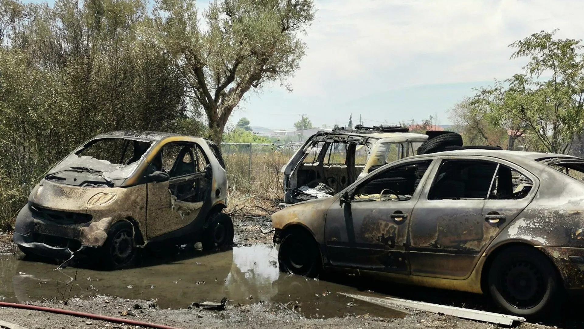 Παράλληλα, κάηκαν αυτοκίνητα τα οποία βρέθηκαν στο διάβα της φωτιάς.