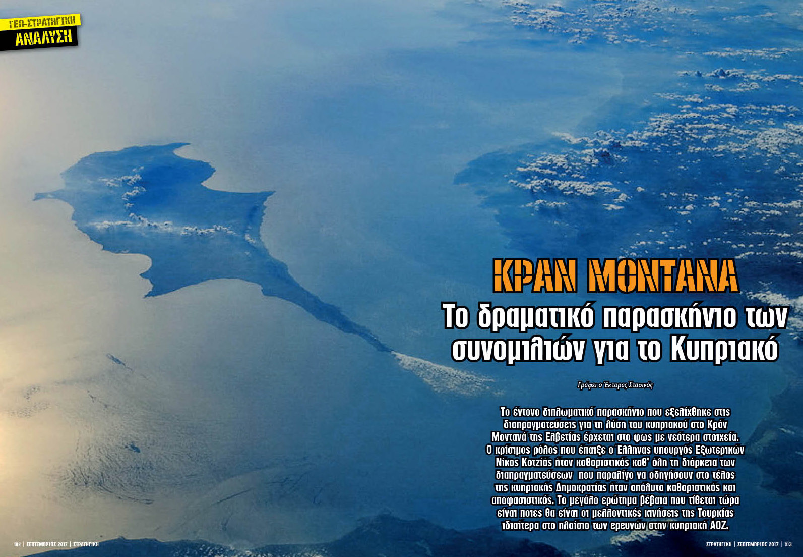 Το έντονο διπλωματικό παρασκήνιο που εξελίχθηκε στις διαπραγματεύσεις για τη λύση του κυπριακού στο Κράν Μοντανά της Ελβετίας έρχεται στο φως με νεότερα στοιχεία. Ο κρίσιμος ρόλος που έπαιξε ο Έλληνας υπουργός Εξωτερικών Νίκος Κοτζίάς ήταν καθοριστικός καθ΄όλη τη διάρκεια των διαπραγματεύσεων που παραλίγο να οδηγήσουν στο τέλος της κυπριακής Δημοκρατίας ήταν απόλυτα καθοριστικός και αποφασιστικός. Το μεγάλο ερώτημα βέβαια που τίθεται τώρα είναι ποιες θα είναι οι μελλοντικές κινήσεις της Τουρκίας ιδιαίτερα στο πλαίσιο των ερευνών στην κυπριακή ΑΟΖ.