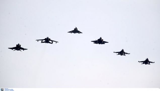Τα μαχητικά διέσχισαν τον αττικό ουρανό από τις 18:20 έως τις 18:30, στο πλαίσιο της άσκησης «Ηνίοχος 2019».