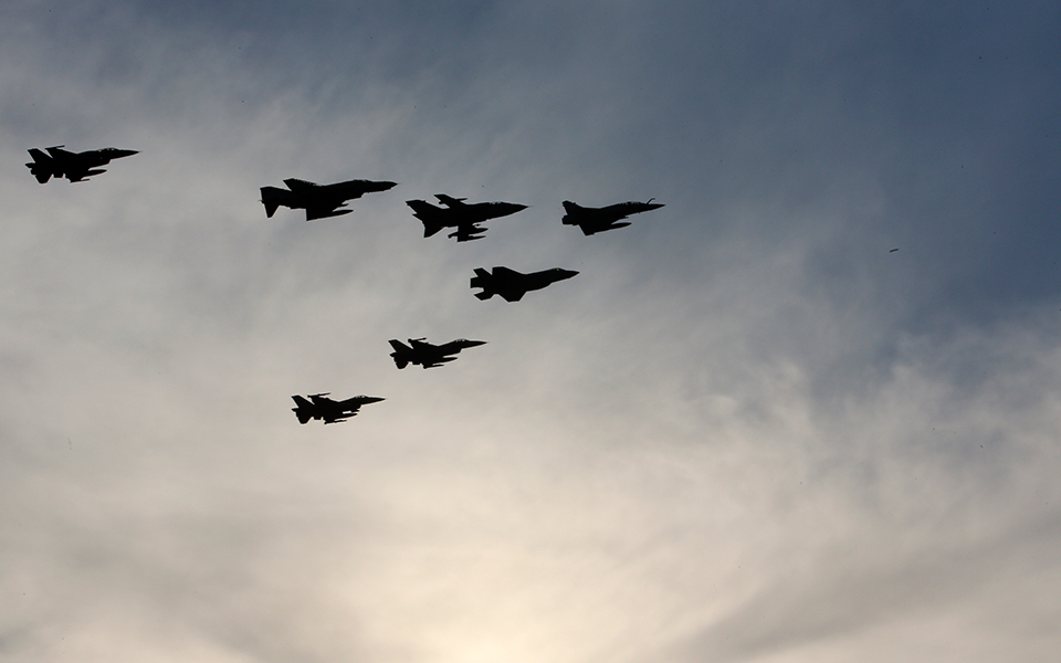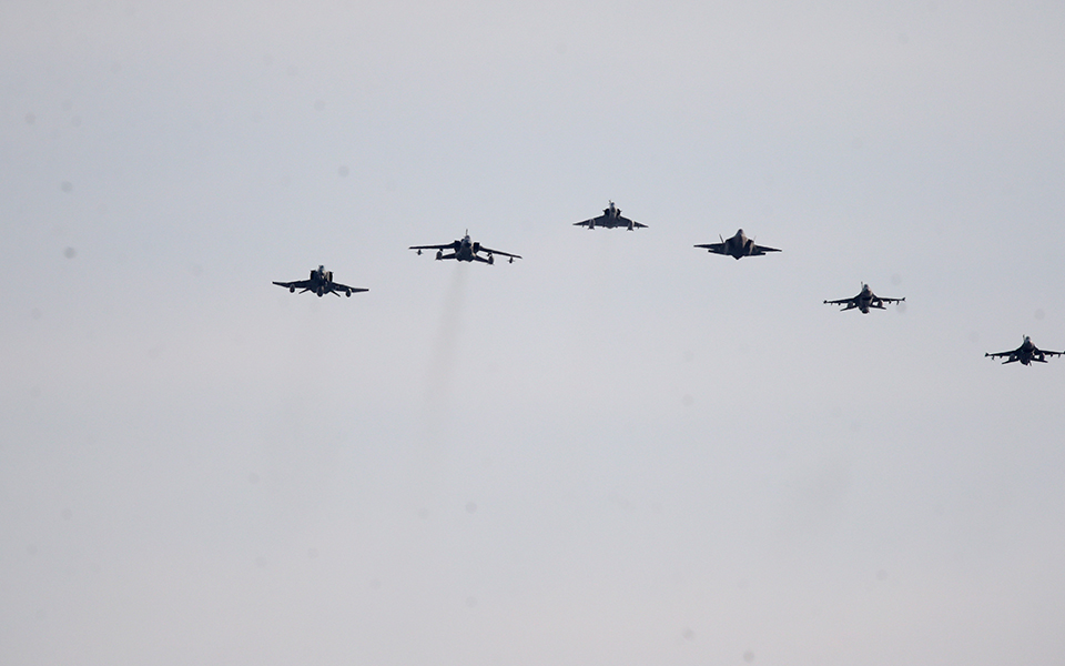 Τα μαχητικά διέσχισαν τον αττικό ουρανό από τις 18:20 έως τις 18:30, στο πλαίσιο της άσκησης «Ηνίοχος 2019».