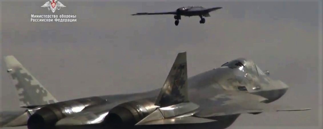 Σε μια επίδειξη ισχύος από το… μέλλον προχώρησε η Ρωσία δίνονταν στην δημοσιότητα ένα βίντεο από την πρώτη κοινή πτήση του μαχητικού αεροσκάφους-ρομπότ Sukhoi S-70 Okhotnik-B με το αεροσκάφος πέμπτης γενιάς Su-57!