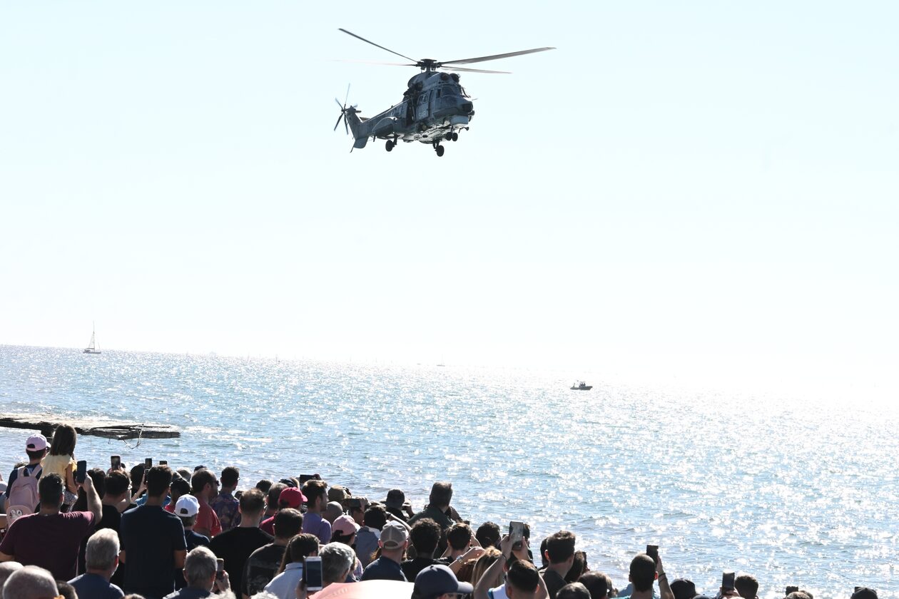 (Ανανέωση από αρχικό κείμενο 11:54) Στις 12 σήμερα το μεσημέρι, πραγματοποιήθηκε στο Φλοίσβο Παλαιού Φαλήρου η αεροπορική επίδειξη με τη συμμετοχή όλων των τύπων των αεροσκαφών της Πολεμικής Αεροπορίας, των Ομάδων Αεροπορικών Επιδείξεων Μεμονωμένου Αεροσκάφους F-16 «Ζευς», T-6A «Δαίδαλος» και του επετειακού αεροσκάφους Spitfire, καθώς και πολιτικών αεροσκαφών των εταιριών «Sky Express» και «Aegean Airlines», στο πλαίσιο των εκδηλώσεων για τον εορτασμό του προστάτη της Πολεμικής Αεροπορίας (ΠΑ) Αρχαγγέλλου Μιχαήλ.