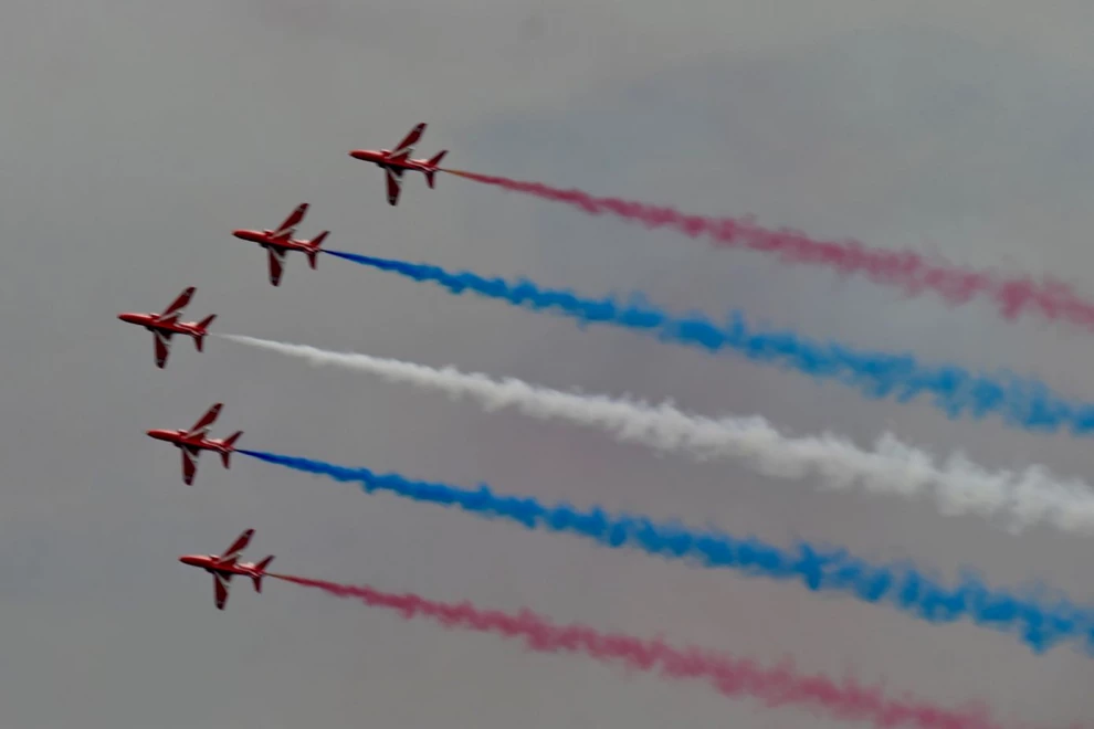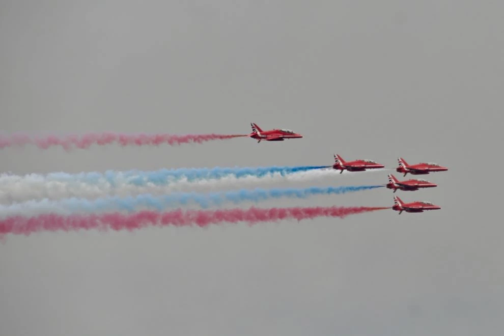 «Red Arrows»: Εικόνες από την επίδειξη του ακροβατικού σμήνους της Βρετανικής Βασιλικής Αεροπορίας στον Φλοίσβο (upd)
