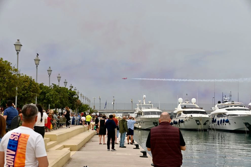 Το θέαμα στον Φλοίσβο από τα αεροσκάφη και τα χρώματα που άφησαν στον ουρανό της Αττικής άφησαν με ανοικτό το στόμα τον κόσμο που παρακολούθησε το γεγονός.