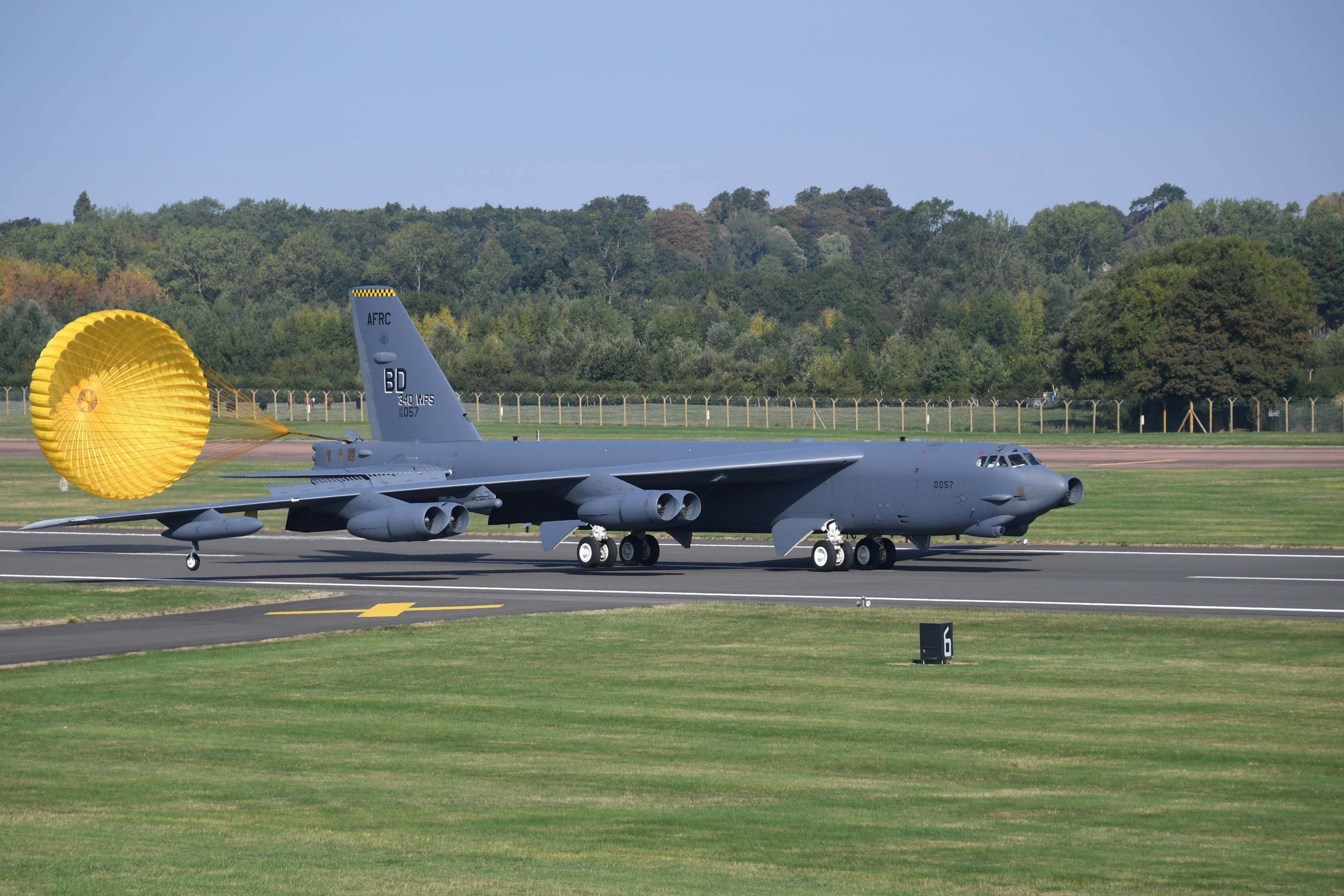 Τέσσερα γιγαντιαία αμερικανικά βομβαρδιστικά μεγάλης εμβέλειας B-52, προσγειώθηκαν στην αεροπορική βάση Fairford της RAF την Κυριακή, αναφέρουν τα βρετανικά ΜΜΕ.