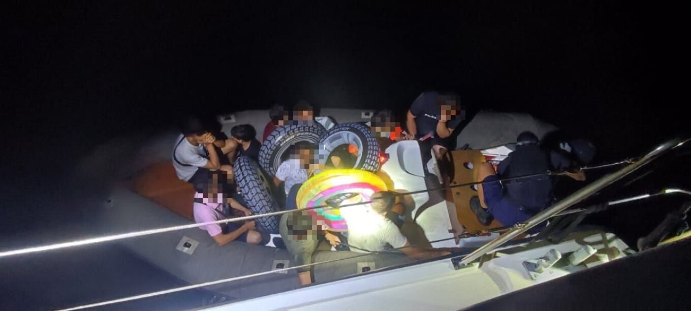 Ακολούθησε καταδίωξη, με αποτέλεσμα την ακινητοποίησή του, ενώ οι δέκα αλλοδαποί μεταφέρθηκαν στον λιμένα του νησιού.