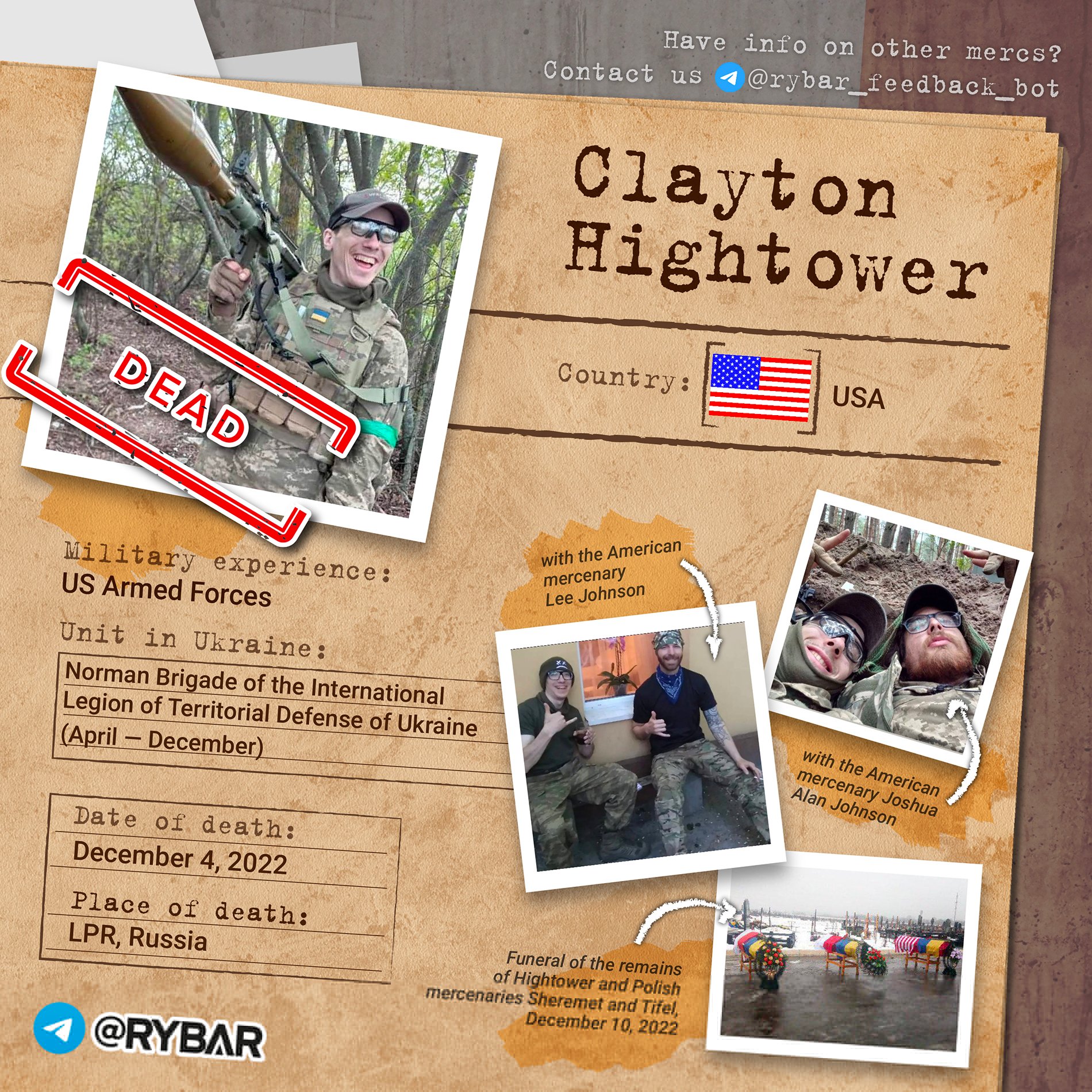 🇺🇸🇺🇦💀 US mercenaries' participation in combat operations on the side of the AFU usually ends with inglorious obituaries. Last week it was reported that an American, Clayton Hightower, was eliminated. pic.twitter.com/rH15ePU5ud