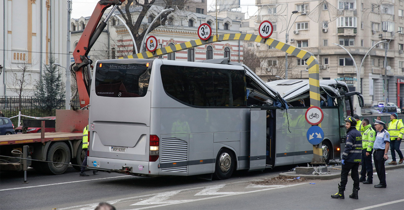 Υπενθυμίζεται πως το τροχαίο δυστύχημα με Έλληνες στη Ρουμανία κόστισε τη ζωή σε έναν 53χρονο άντρα από την Λάρισα. Το τουριστικό λεωφορείο που είχε ξεκινήσει από τον Βόλο και την Λάρισα, με 47 Έλληνες επιβαίνοντες, παραβίασε το όριο ύψους, σε κεντρικό δρόμο, στο Βουκουρέστι και προσέκρουσε σε μεταλλική δοκό για τη σήμανση.