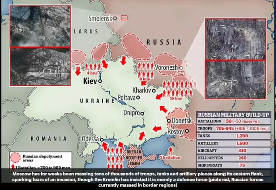 Ενώ η Δύση κατηγορεί τη Ρωσία για μεγάλη συγκέντρωση στρατευμάτων στα σύνορα, η Ουκρανία ζητάει τη βοήθειά της, οι Ρώσοι απαντούν ότι δεν έχουν καμία πρόθεση εισβολής, απαιτώντας όμως παράλληλα να αποχωρήσουν όλες οι ΝΑΤΟϊκές δυνάμεις από τη γειτονιά της.