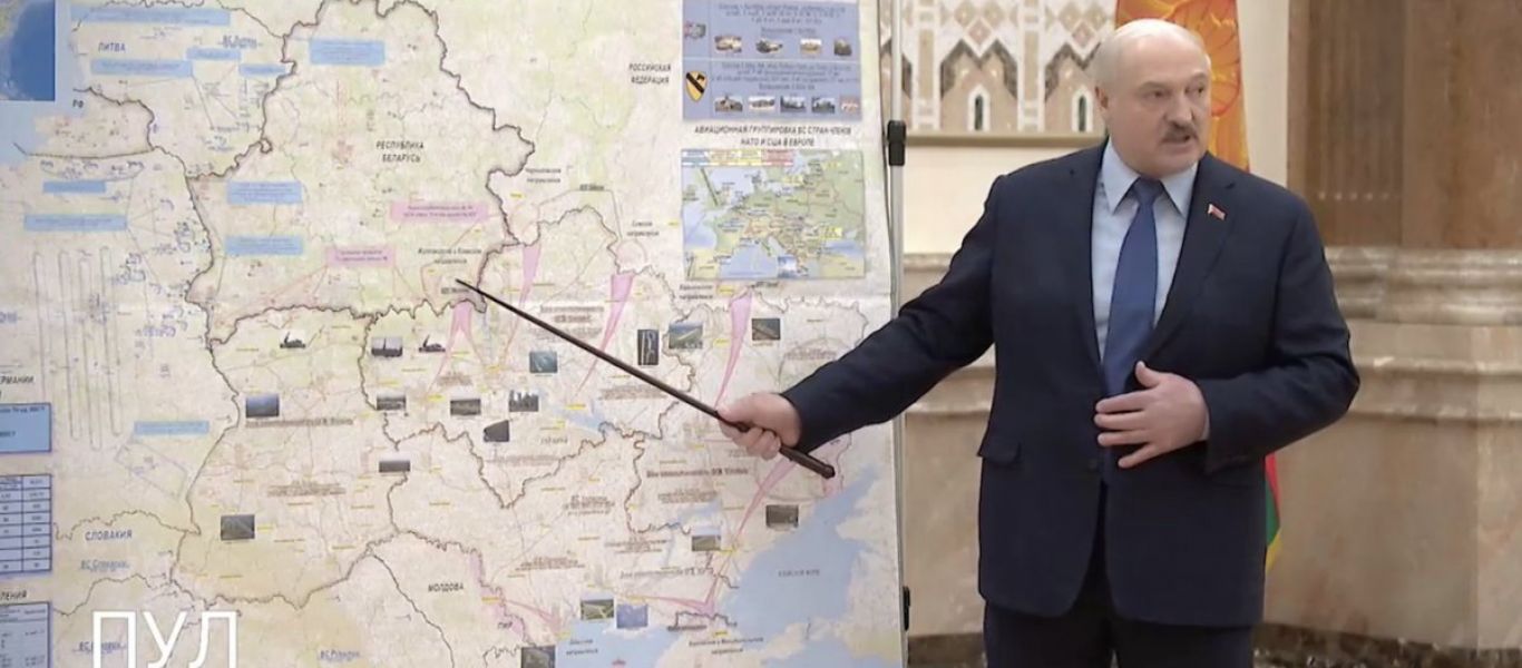 Τη Μολδαβία φαίνεται να δείχνει ο πρόεδρος της Λευκορωσίας Αλεξάντερ Λουκασένκο κατά τη διάρκεια σύσκεψης του συμβουλίου Εθνικήςς Ασφάλειας σύμφωνα με φωτογραφία που είδε το φώτα της δημοσιότητας.