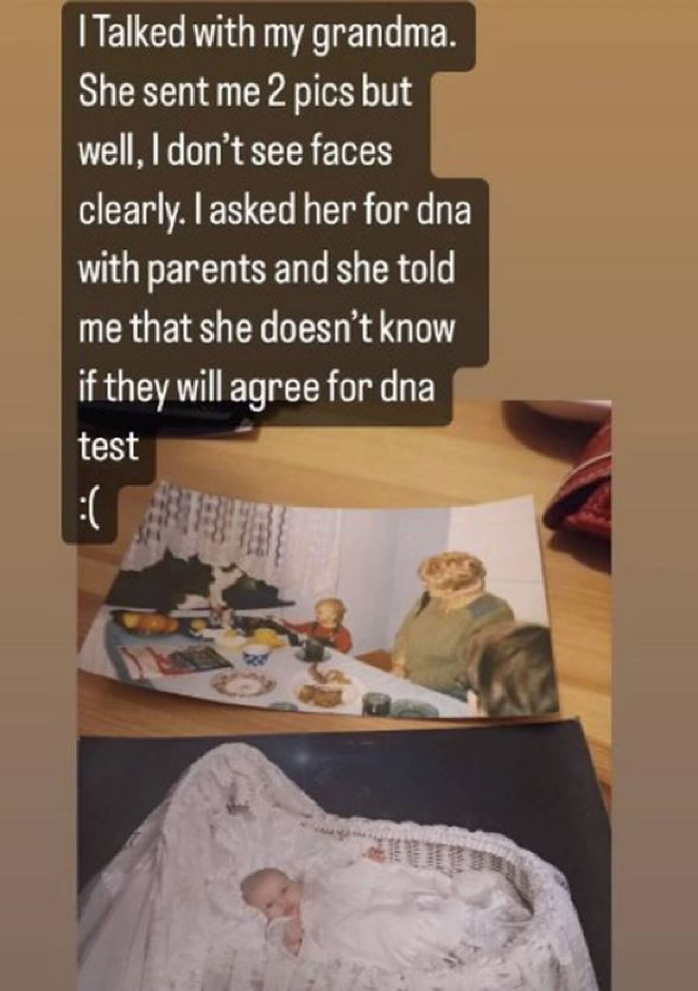 Σε μια ξεχωριστή ανάρτηση, ανέβασε μια φωτογραφία μωρού που της έδωσε η γιαγιά της ως απάντηση στις ερωτήσεις για την ταυτότητά της, αλλά δεν πείθεται.