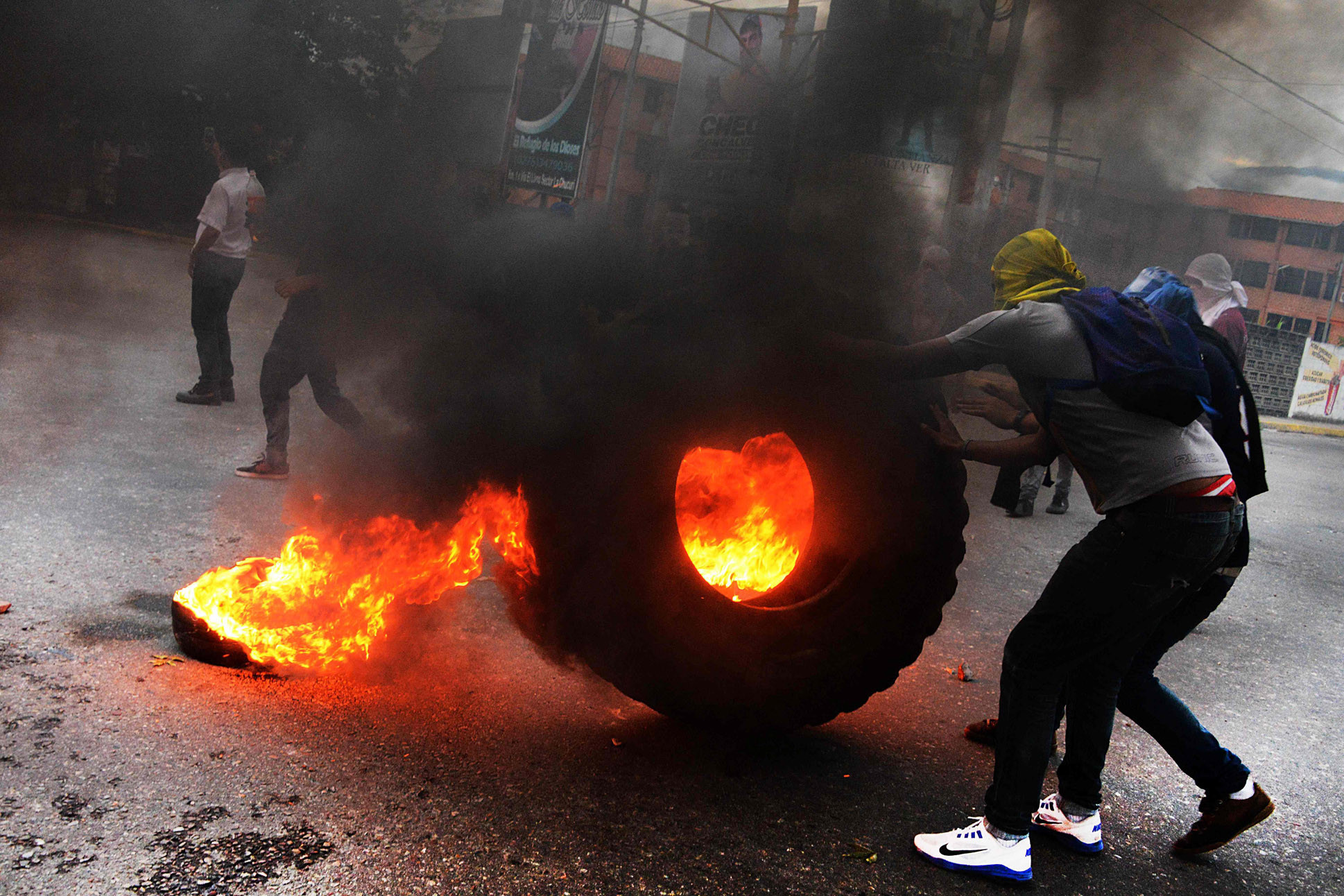 Δύο άνθρωποι μάλιστα κάηκαν ζωντανοί στους δρόμους της Βενεζουέλας κατά τη διάρκεια των συγκρούσεων.