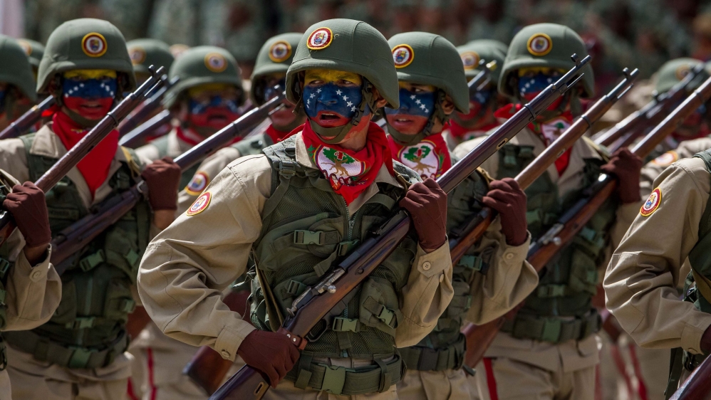 «Έχουμε απειληθεί χωρίς ντροπή από την πιο εγκληματική αυτοκρατορία που υπήρξε ποτέ και έχουμε υποχρέωση να ετοιμαζόμαστε για την εγγύηση της ειρήνης», δήλωσε ο Μαδούρο φορώντας στρατιωτική στολή κατά τη διάρκεια στρατιωτικής άσκησης: