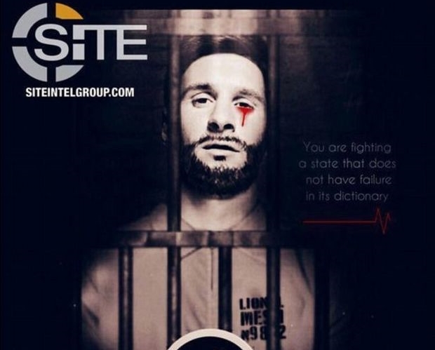 Ο ISIS διέρρευσε στον Τύπο φωτογραφίες που αφορούν το Μουντιάλ, με αποκλειστικό στόχο να τρομακρατήσει τον κόσμο. Μία εκ των φωτογραφίων αφορά τον κορυφαίο παίκτη του κόσμου, Λιονέλ Μέσι, τον οποίο δείχνει να βγάζει δάκρυα από αίμα. «Πολεμάτε ένα κράτος το οποίο δεν έχει την αποτυχία στο λεξικό του«, είναι το μήνυμα που συνοδεύει τη φωτογραφία. Ο σούπερ σταρ της Μπαρτσελόνα θα αγωνιστεί στα γήπεδα της Ρωσίας, μιας κι η Αργεντινή εξασφάλισε πριν από λίγες μέρες την παρουσία της στο Μουντιάλ.