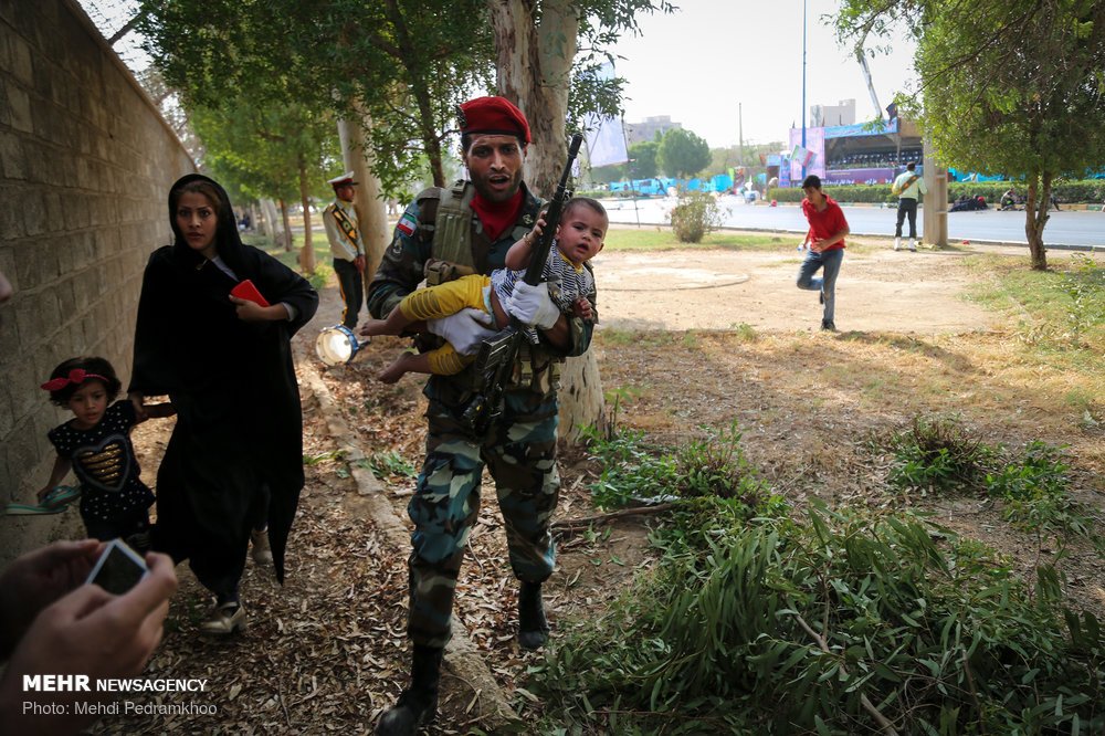 Οι Ιρανοί αναφέρουν πως οι δράστες προσπάθησαν να πυροβολήσουν εναντίον της εξέδρας των επισήμων, όμως τους εξουδετέρωσαν οι δυνάμεις ασφαλείας.
