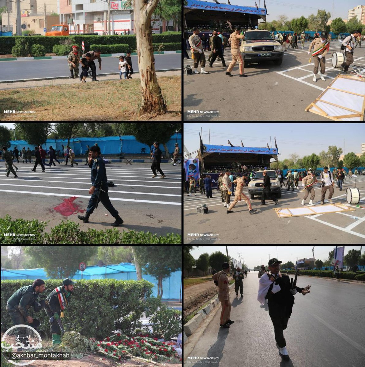 The scene of the military parade after the attack, according to @Tasnimnews_Fa the attackers failed in breaking into the parade so they started shooting from outside pic.twitter.com/BlXUQUOnZX