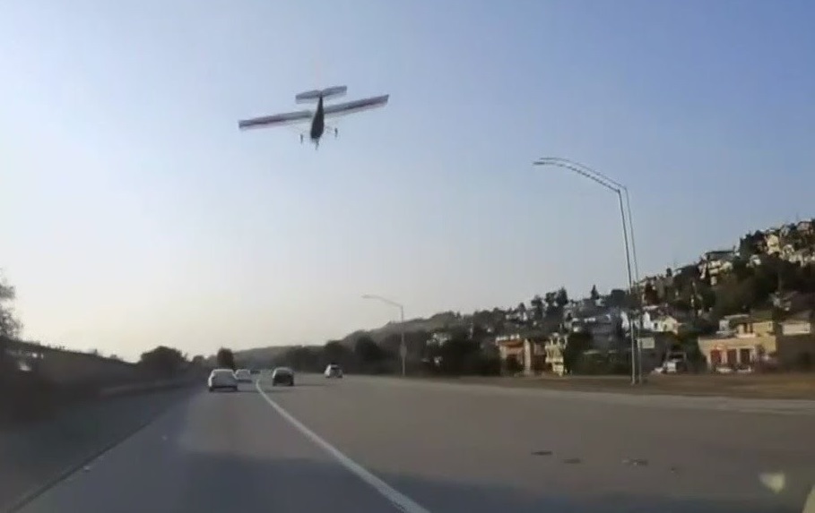 Ένα μικρό αεροπλάνο με έναν εκπαιδευτή και έναν συγκυβερνήτη έκανε αναγκαστική προσγείωση στη μέση της κυκλοφορίας σε αυτοκινητόδρομο κοντά στο Σαν Ντιέγκο.