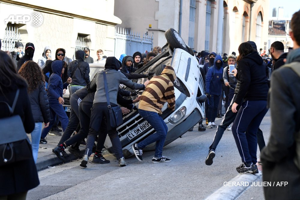Αυτό που τρόμαξε τον Ε.Μακρόν είναι το “επαναστατικό πνεύμα” που έδειξαν οι μαθητές και οι φοιτητές. Πολλά αυτοκίνητα πυρπολήθηκαν , σχολεία έβαλαν λουκέτα, διάσημα κολέγια έκλεισαν το Blagnac, “Saint-Exupéry”, το “Déodat de Séverac”.