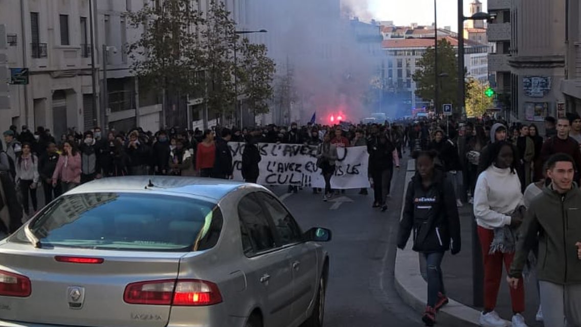 Με σύνθημα “Μακρόν Παραιτήσου, θα μπλοκάρουμε όλη την χώρα” χιλιάδες μαθητές βγήκαν σήμερα στους δρόμους της Γαλλίας, σε Μπορντώ, Λιλ, Clichy, Μαρσέιγ, Τουλούζ κτλ.