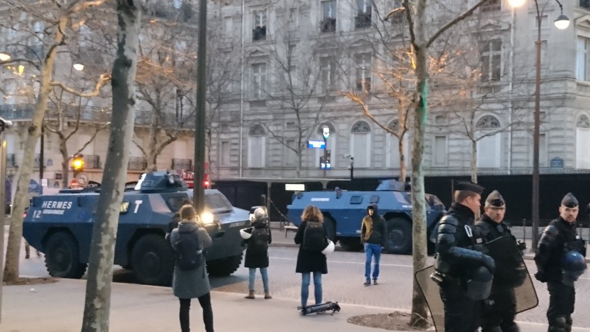 Η Αστυνομία έχει “σφραγίσει”όλους τους δρόμους που οδηγούν στον Ε.Μακρόν. Δυνάμεις της Στρατοχωροφυλακής έχουν αναπτυχθεί μαζί με τεθωρακισμένα σε λεωφόρο των Ηλυσίων, στην Αψίδα του Θριάμβου και στη Βαστίλη. Το προεδρικό και πρωθυπουργικό μέγαρο έχουν αποκλειστεί.