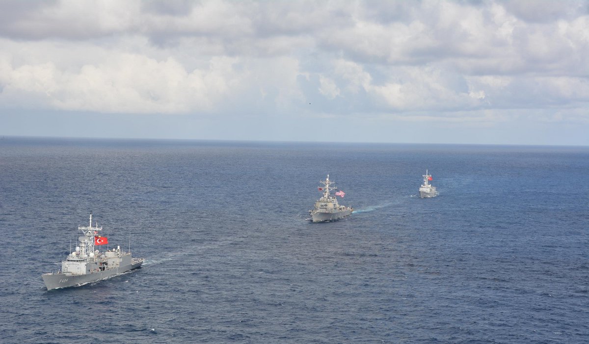 Deniz Kuvvetlerimize ait TCG GÖKÇEADA, TCG GEMLİK Fırkateynleri, bir helikopter ve bir deniz karakol uçağımız ile ABD Deniz Kuvvetlerine ait USS D. COOK Muhribinin katılımıyla, 17 Aralık 2018’de, Kıbrıs Adası güneybatısında uluslararası sularda deniz eğitimleri icra edildi. pic.twitter.com/AI8P0x2dPI